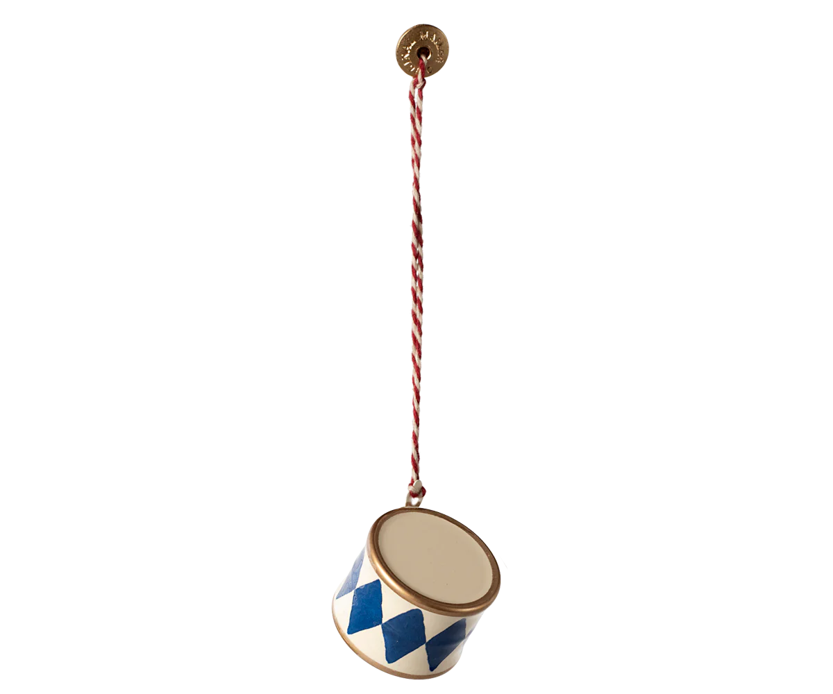 Metallanhänger, Trommel klein, neue Farbe 2024. Tolles Dunkelblau mit Altweiß. 3 cm im Durchmesser, 2,5 cm hoch. Weihnachtsdekoration. Du erhälst nur eine Trommel, auf dem anderen Foto ist ein Dekorationsbeispiel.