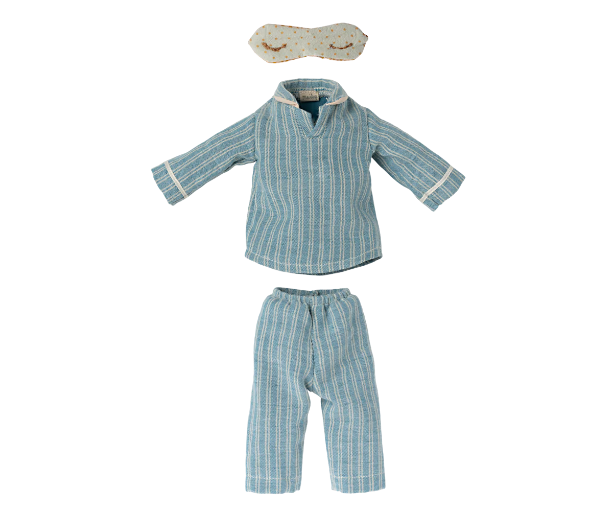 Pyjama-Set für die (größere) Medium-Maus. 3 Teile, Baumwolle, bei 30 Grad waschbar. Dieses Angebot beinhaltet nur das 3-teilige Set, keine Mäuse oder Deko.